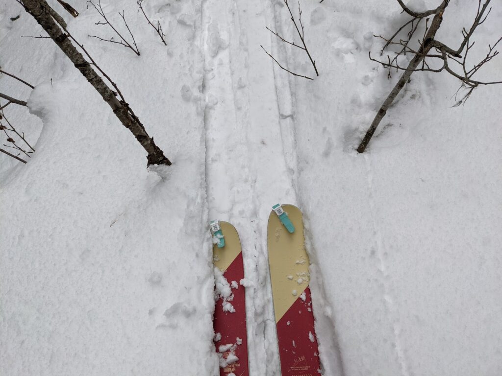 After admiring them for a bit, I got them all trimmed up in my living room. No issues so far aside from their somewhat surprising bulk/lack of pliability. Then I took them out in the field. And my first impression was that the glide was…average. At best. My first thought was they felt like full on nylon skins (which aren’t known for their glide). But I thought maybe they would break in over time and the glide would improve. I didn’t recall having to ‘break in’ my last pair of skins, the Contour Hybrid Mix, but maybe Pomocas are different?